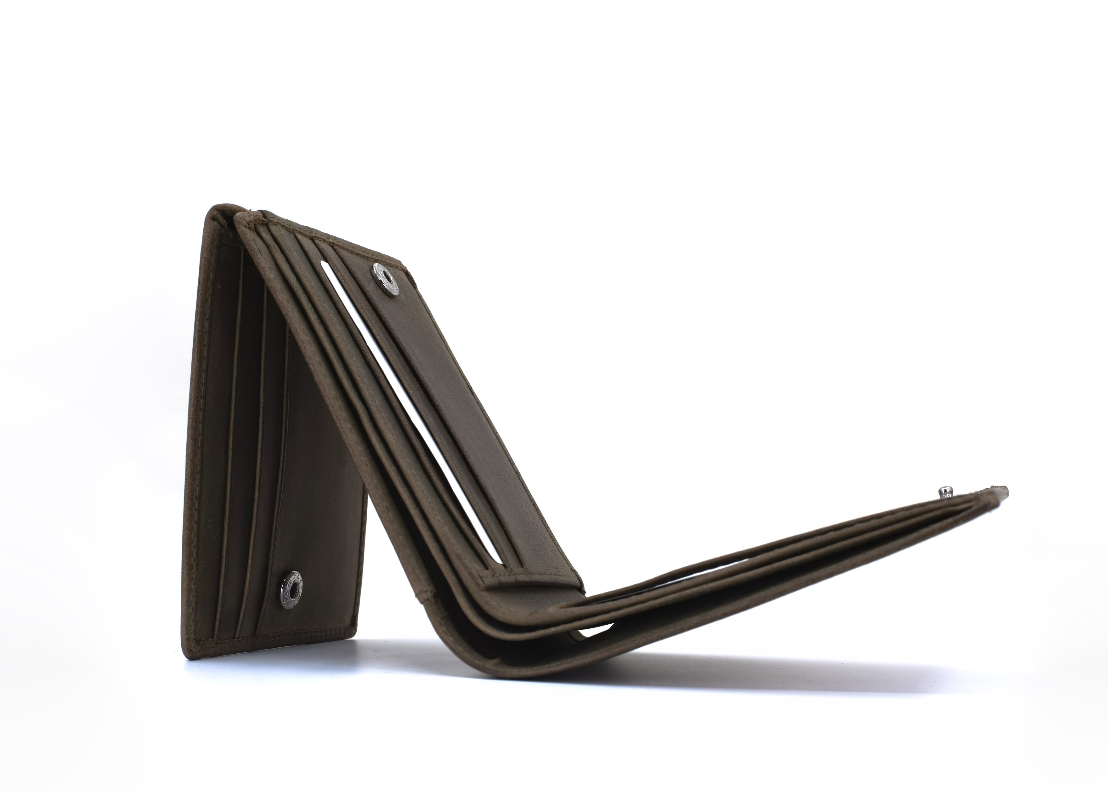 Three part, 2 fold layout, bulky look for macho feel