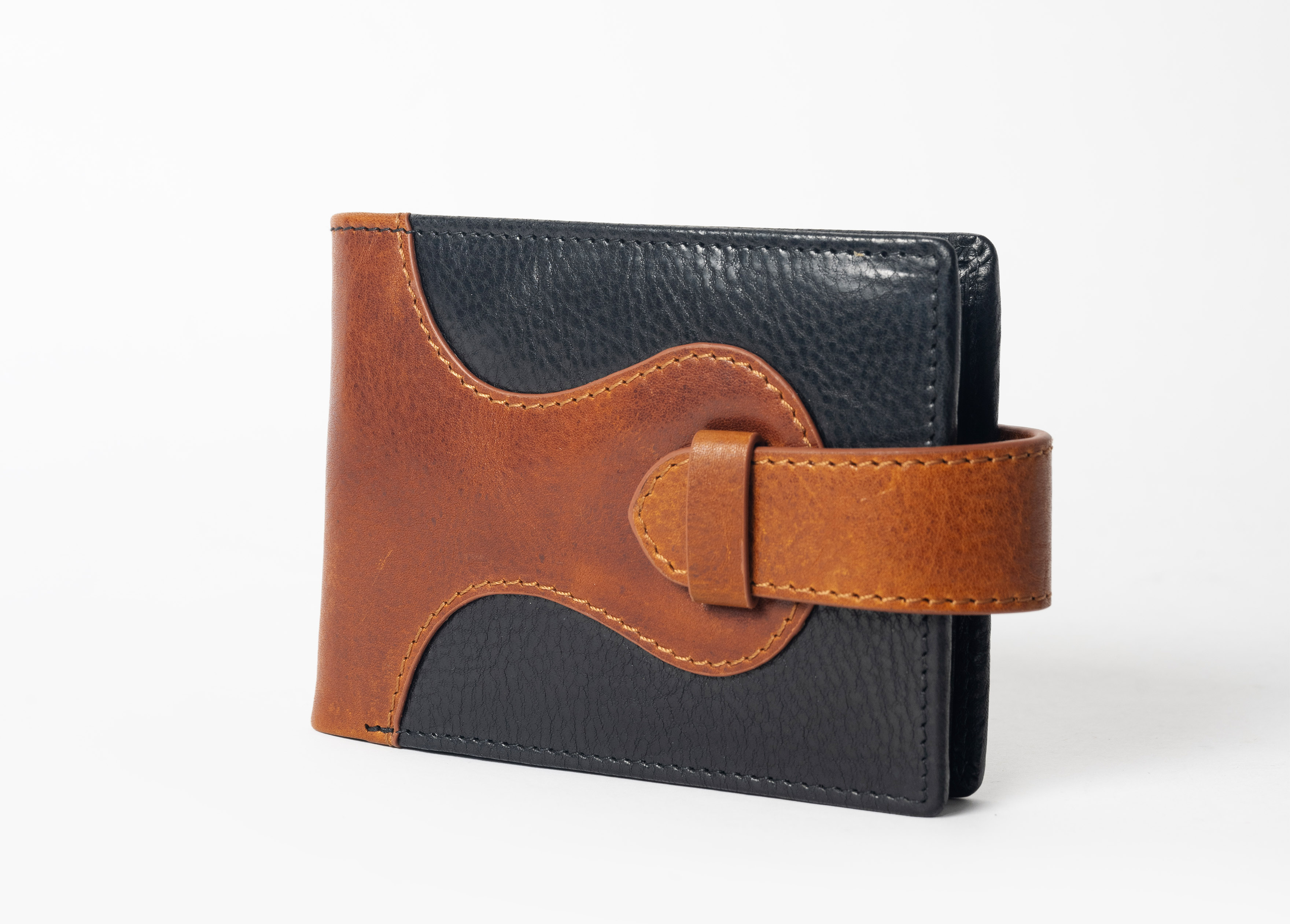 Hand-stitched detailing and slimline design, with a snap-on