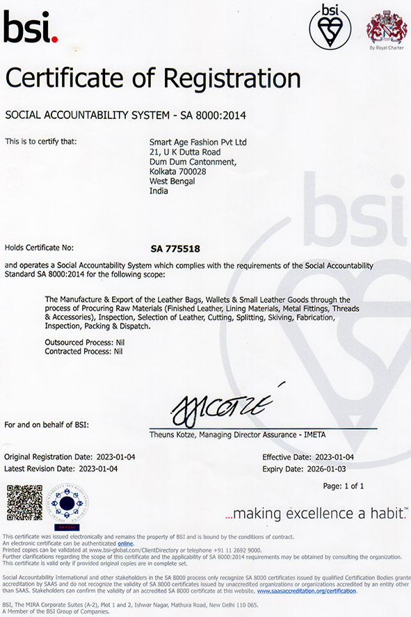 DIRECTORIts a Journey of more than 30 successful years. SmartAge Fashion started its journey in 1994, from Kolkata (erstwhile Calcutta), India with the vision of creating international standard premium quality leather goods from India. The dream was to create an full fledged export orient manufacturing unit of premium quality leather accessories, aptly combining exemplary skill India artisans and state of the art modern machines