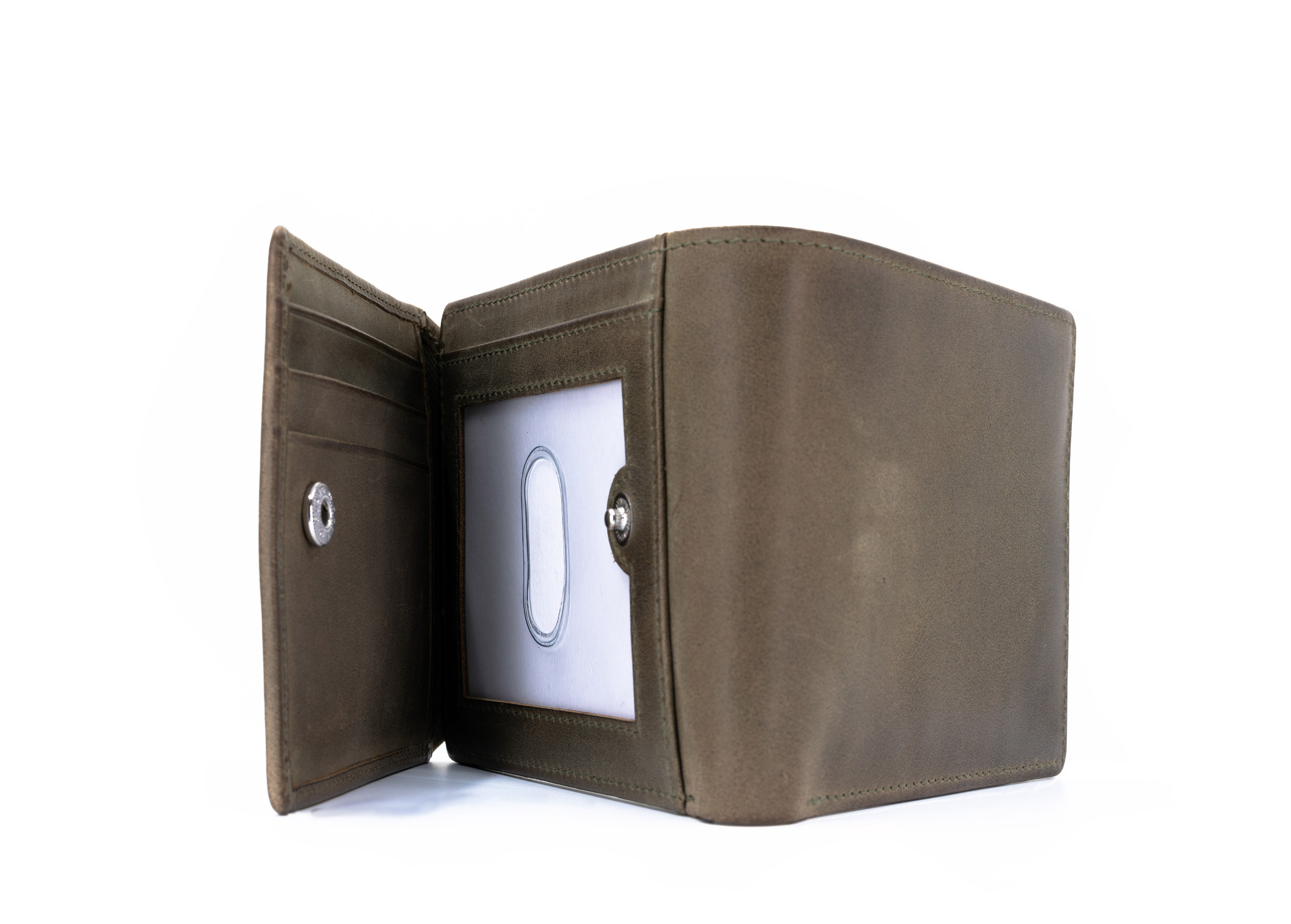 Perfect for those who carry more, this trifold wallet is crafted from full-grain hunter leather that showcases raw texture and deep tones. With multiple card slots, ID windows, and a secure folding design, it keeps everything organized without sacrificing its rugged appeal.