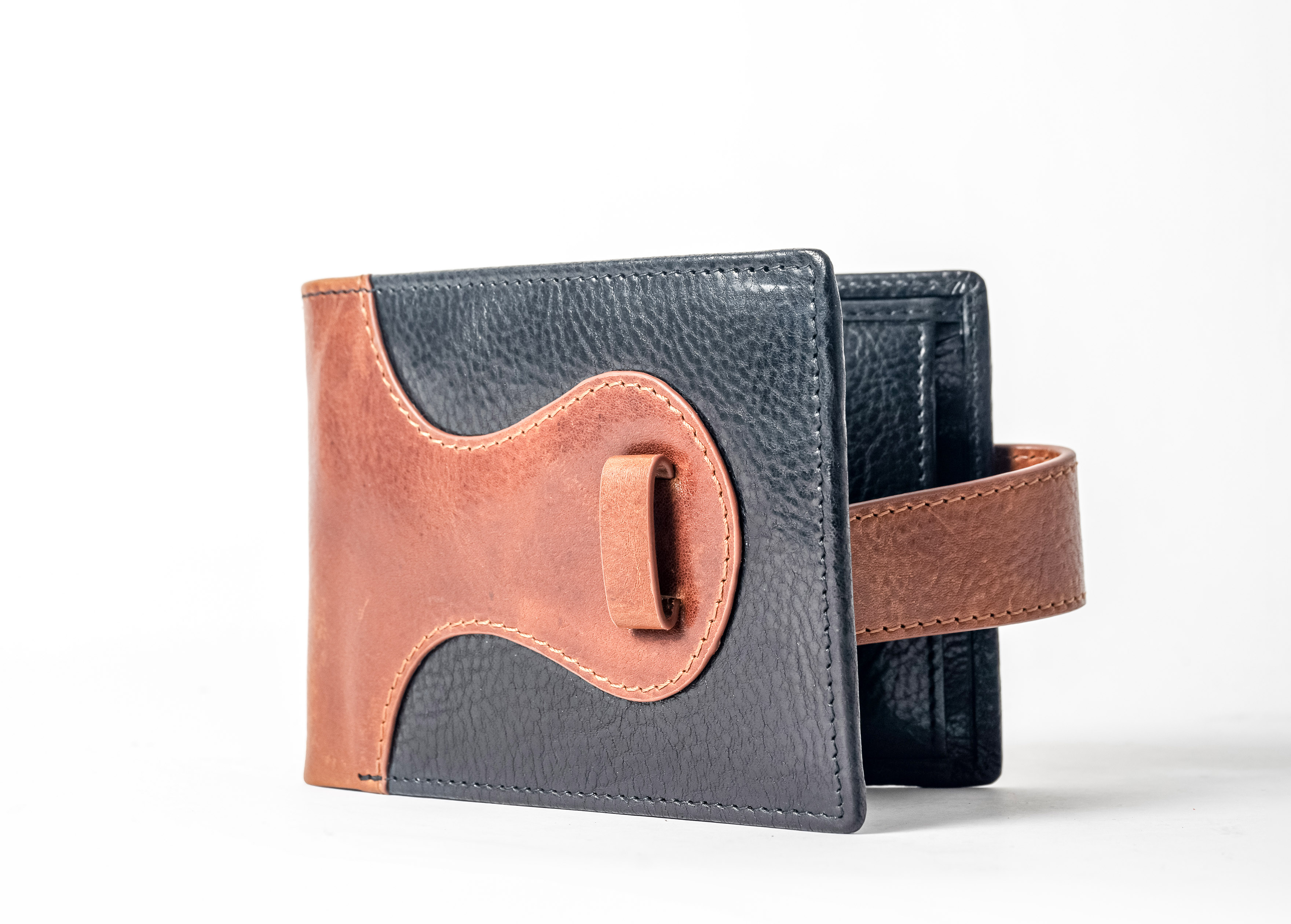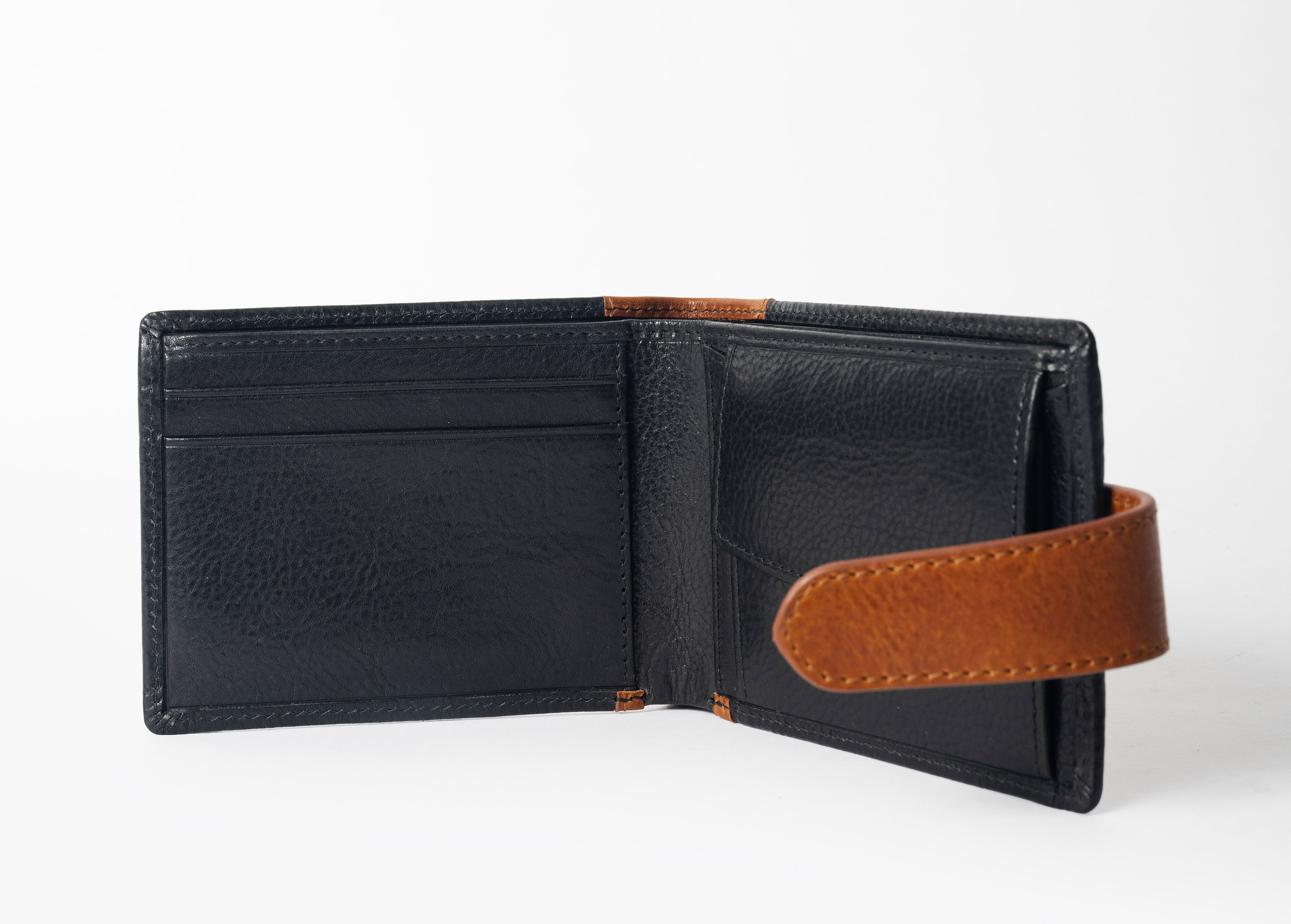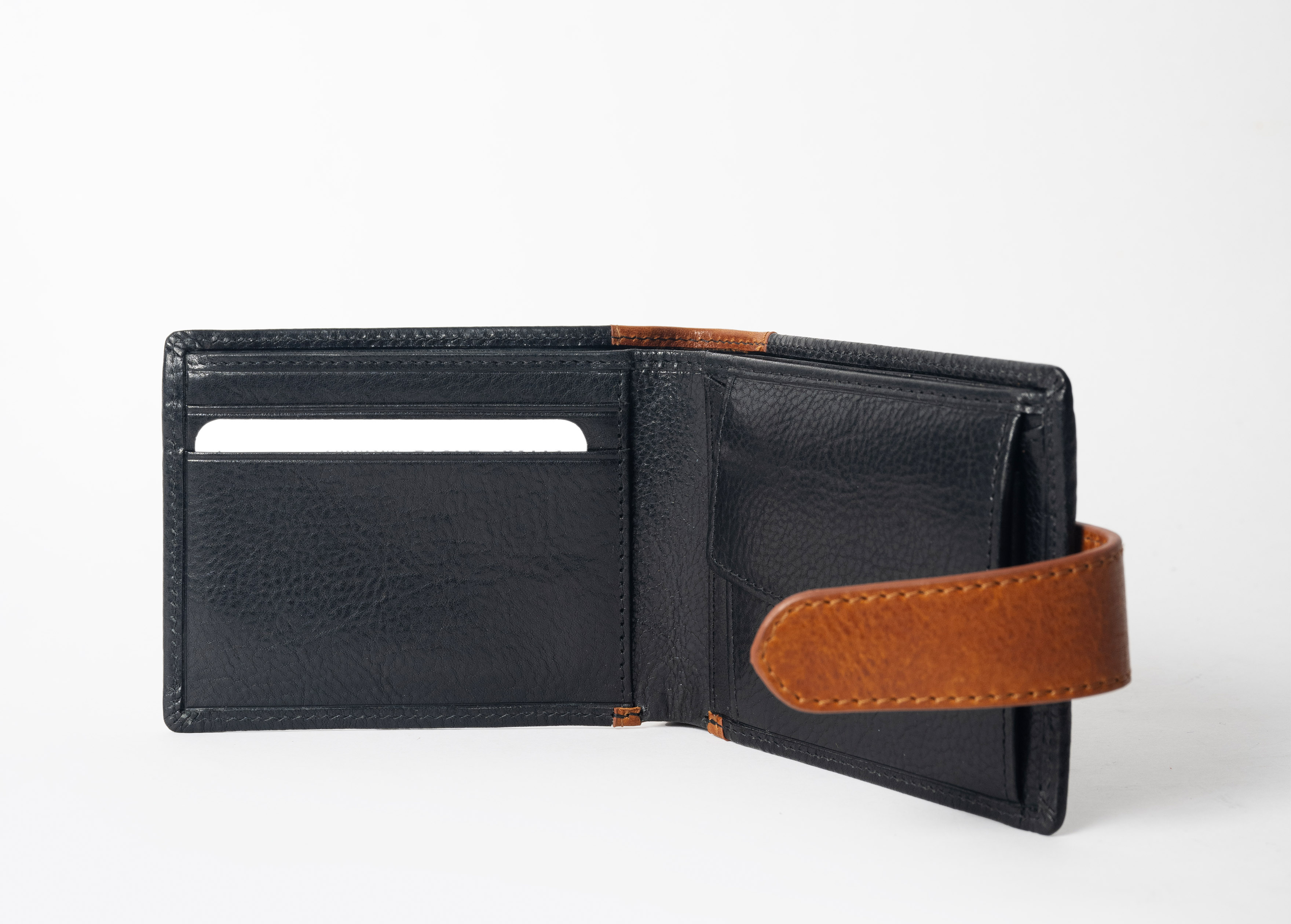 Hand-stitched detailing and slimline design, with a snap-on